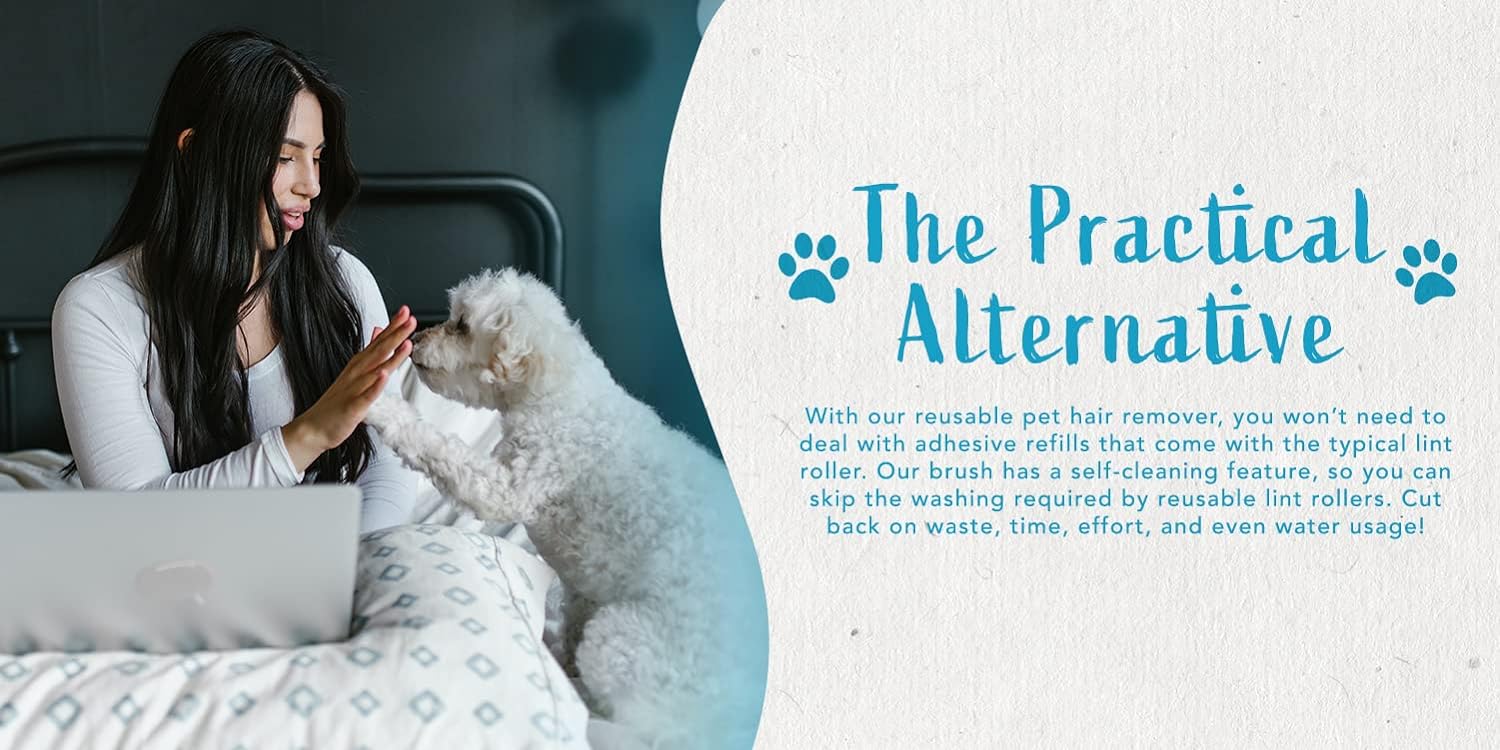 - REUSABLE LINT AND PET FUR REMOVER BRUSH - 100% Reusable pet hair remover for environmentally conscious and cost-conscious pet owners. Saves you money since no refills are required. No more sticky sheets for hassle free cleaning. Cut back on waste and effort and leave the lint rollers behind.
