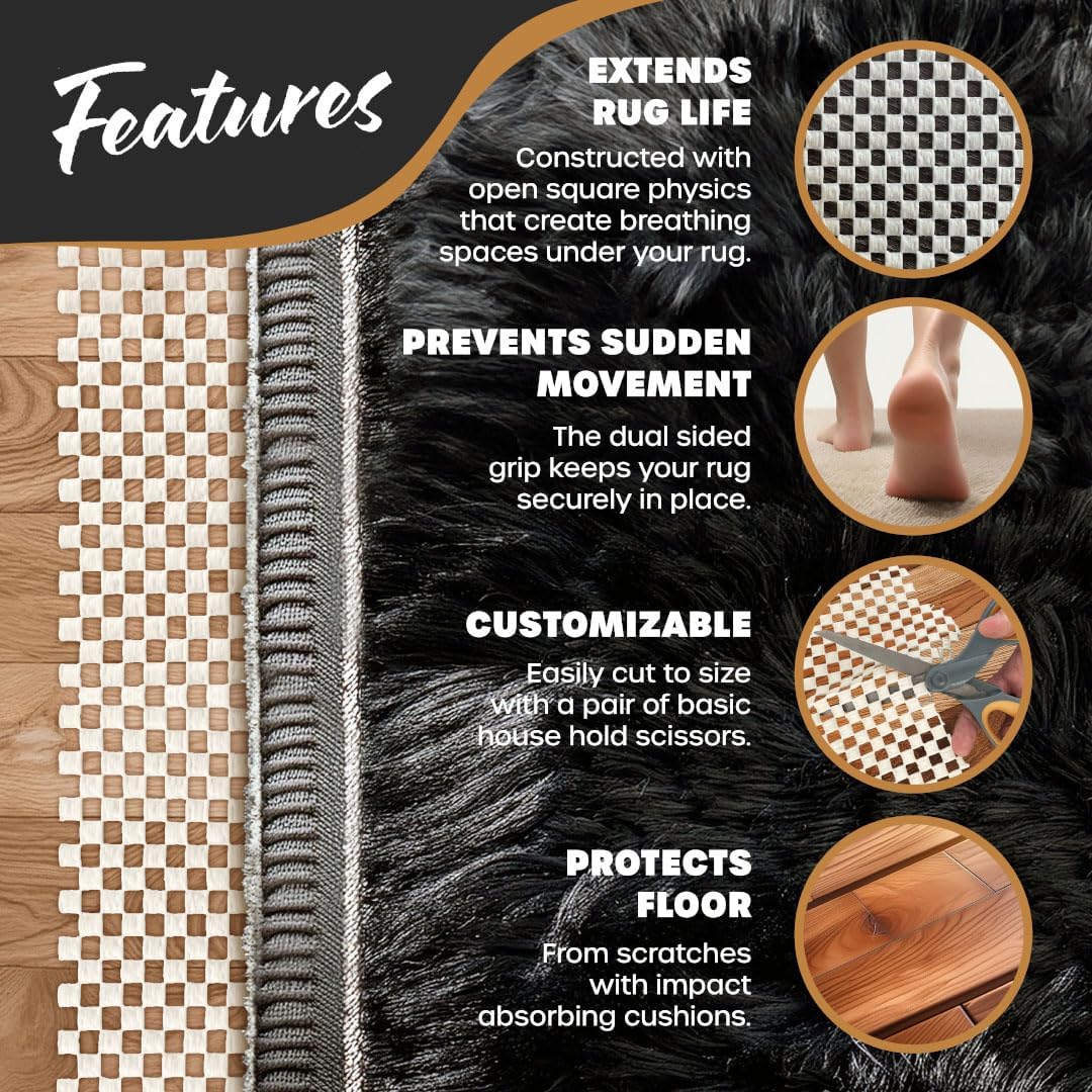- Custom Fit & Easy Maintenance: Say goodbye to frustrating slipping & sliding! The Nevlers Carpet Grippers for hardwood floors are easy to trim with just a pair of scissors & fit seamlessly beneath any rug. The carpet non slip grip design makes setup simple, & cleaning the rug anti slip pad with a damp cloth or standard vacuum is a breeze. Whether in the living room, kitchen, or bedroom, this versatile area rug pad elevates the comfort of any space while providing essential grip & stability.