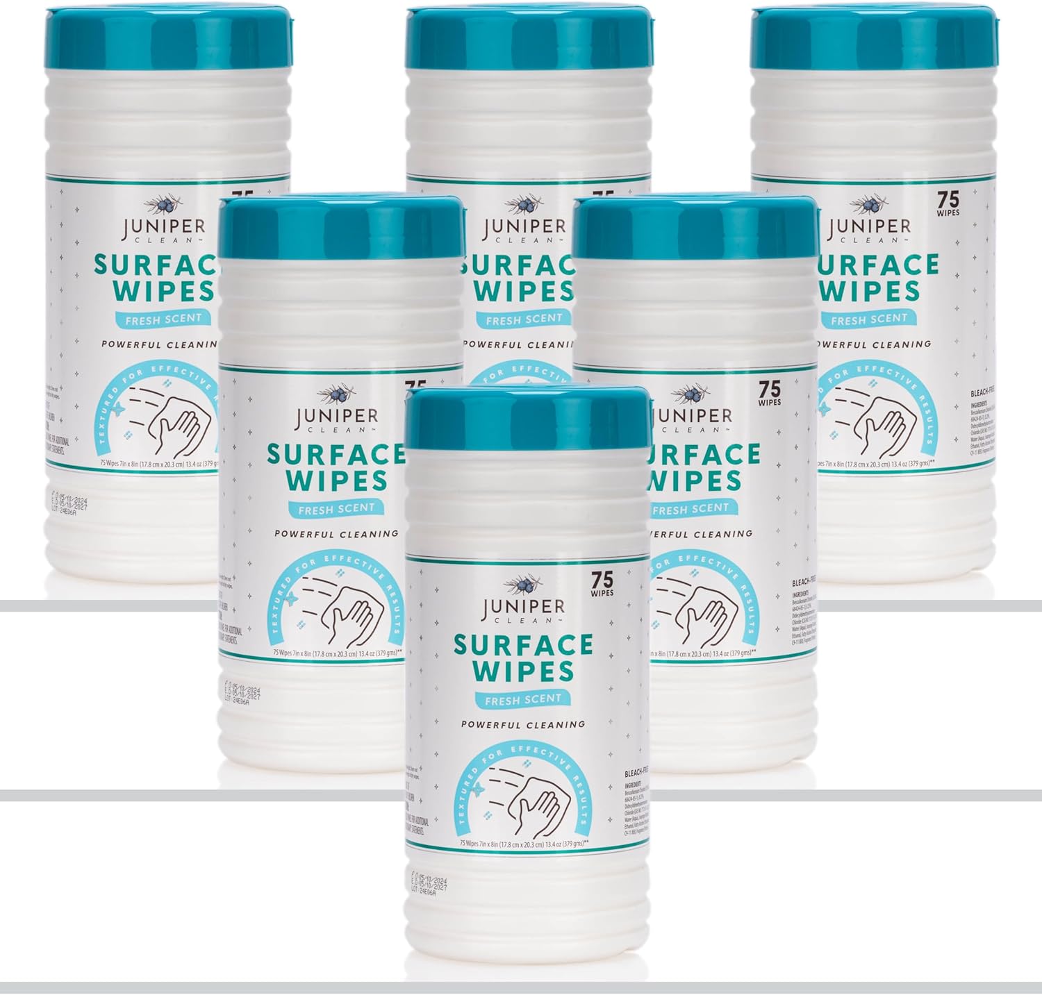 - 【 INCLUDES - CONTAINS 6 PACK CANISTER OF 75 DISPOSABLE 】 Surface cleaning wipes bleach free are a total 450 disposable. Wipe dimensions are 7.5" x 7".