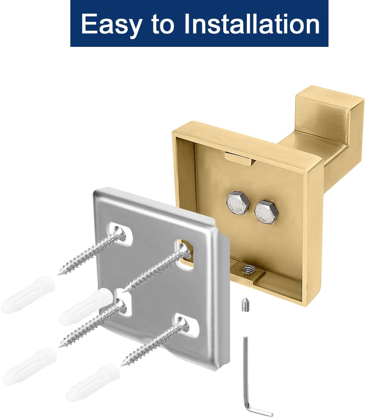 NearMoon Bath Towel Hooks -SUS304 Stainless Steel Square Clothes Robe Hooks Hanger, Heavy Duty Coat Hooks for Bathroom Livingroom Hotel Kitchen Garage, Wall Mounted (3 Pack, Chrome Gold)