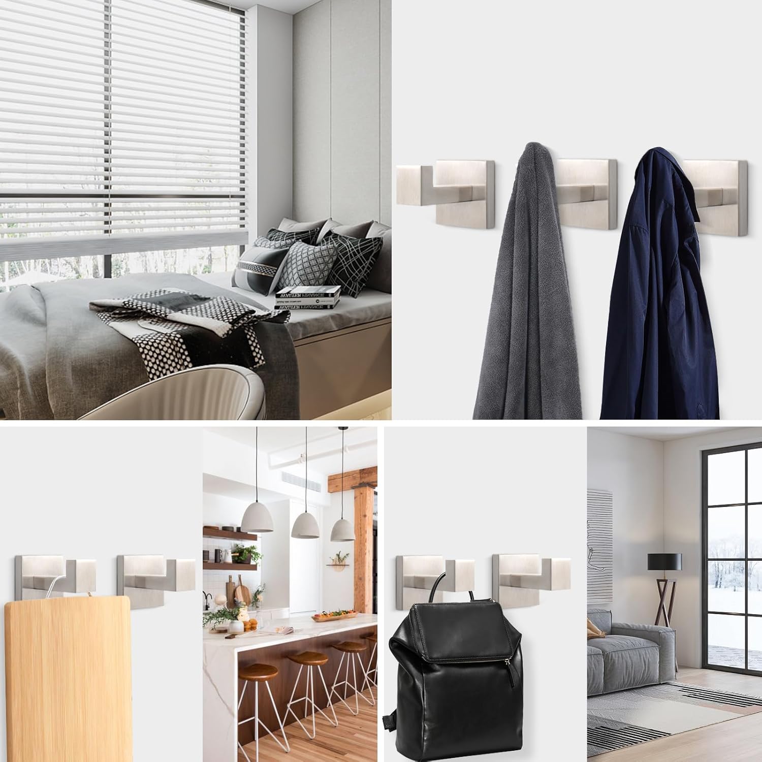 NearMoon Bath Towel Hooks -SUS304 Stainless Steel Square Clothes Robe Hooks Hanger, Heavy Duty Coat Hooks for Bathroom Livingroom Hotel Kitchen Garage, Wall Mounted - 3 Pack (Brushed Nickel)
