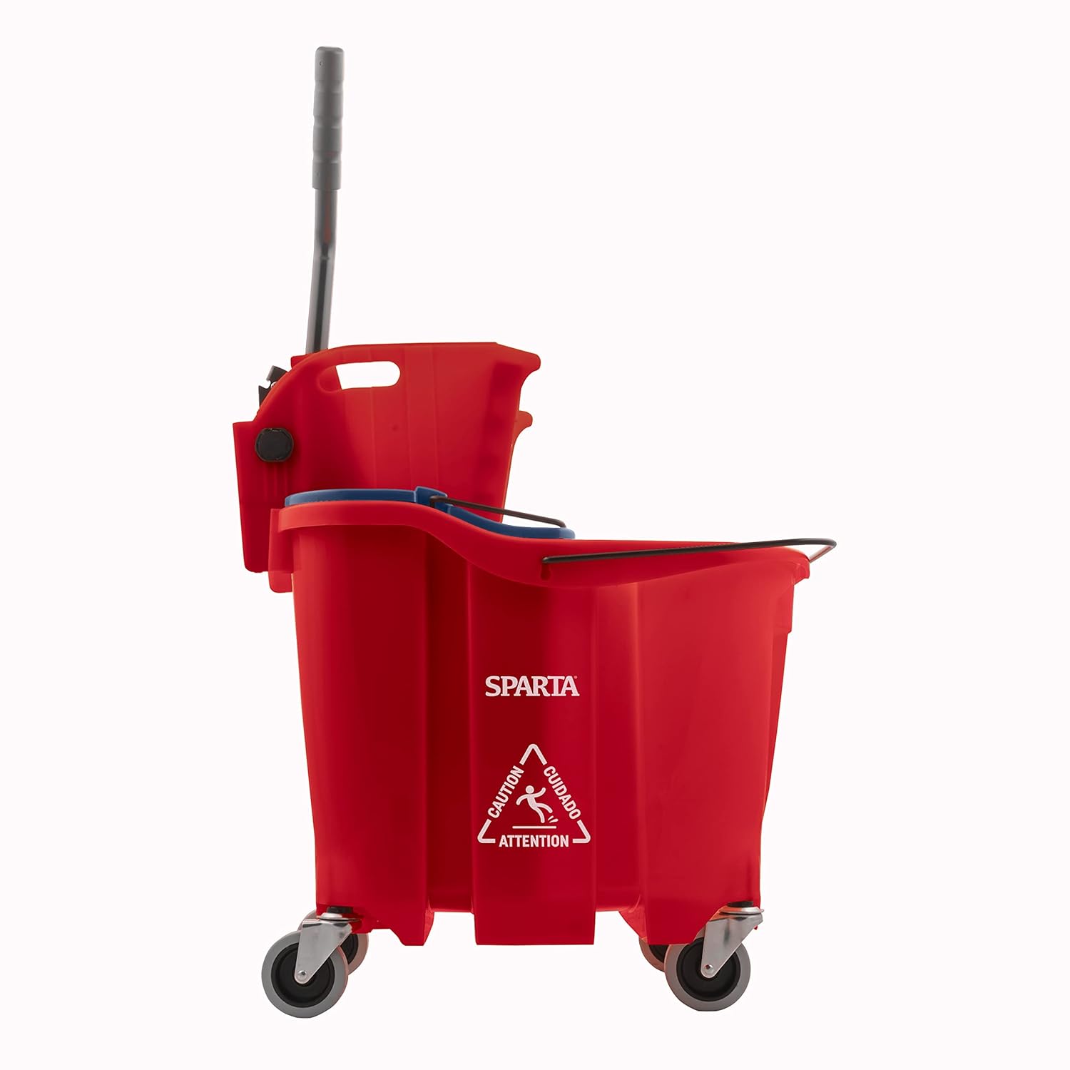 Carlisle FoodService Products Mop Bucket with Side-Press Wringer & Soiled Water Insert for Floor Cleaning, Restaurants, Office, And Janitorial Use, Polypropylene, 35 Quarts, Red