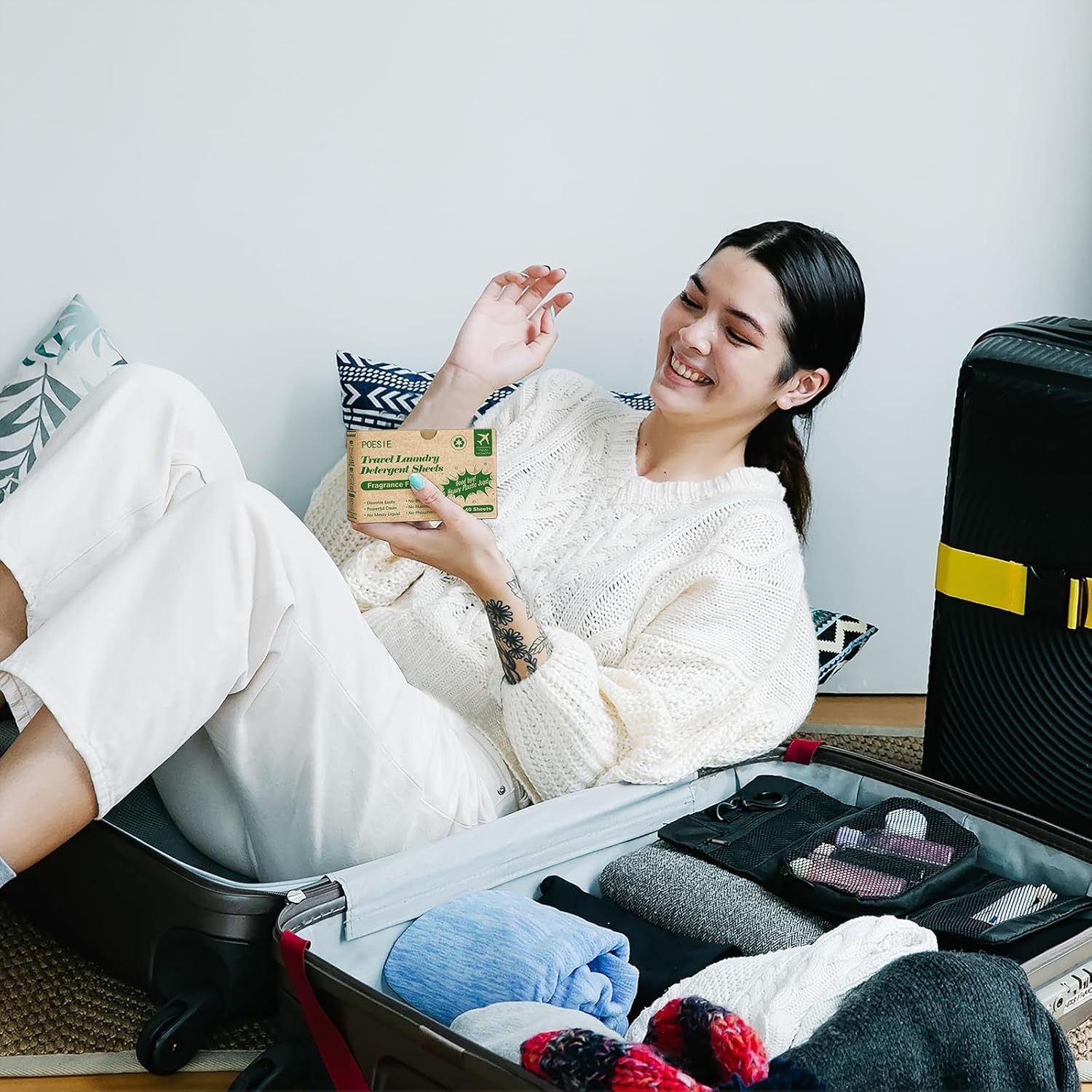 Poesie Laundry Detergent Sheets Laundry Soap Sheets for Travel Camping Clothes Washing Sheet Unscented 1 Mini Box 40 Count