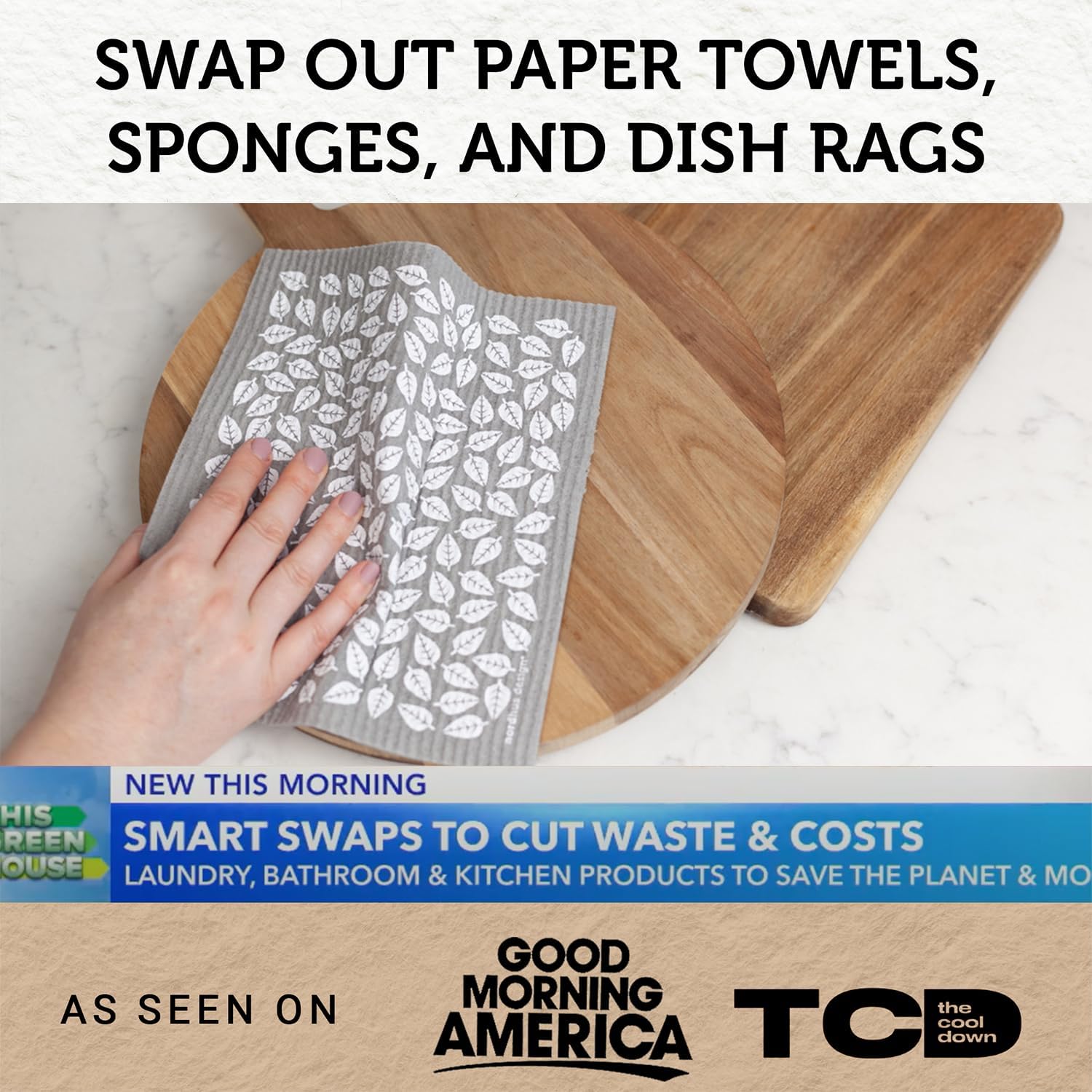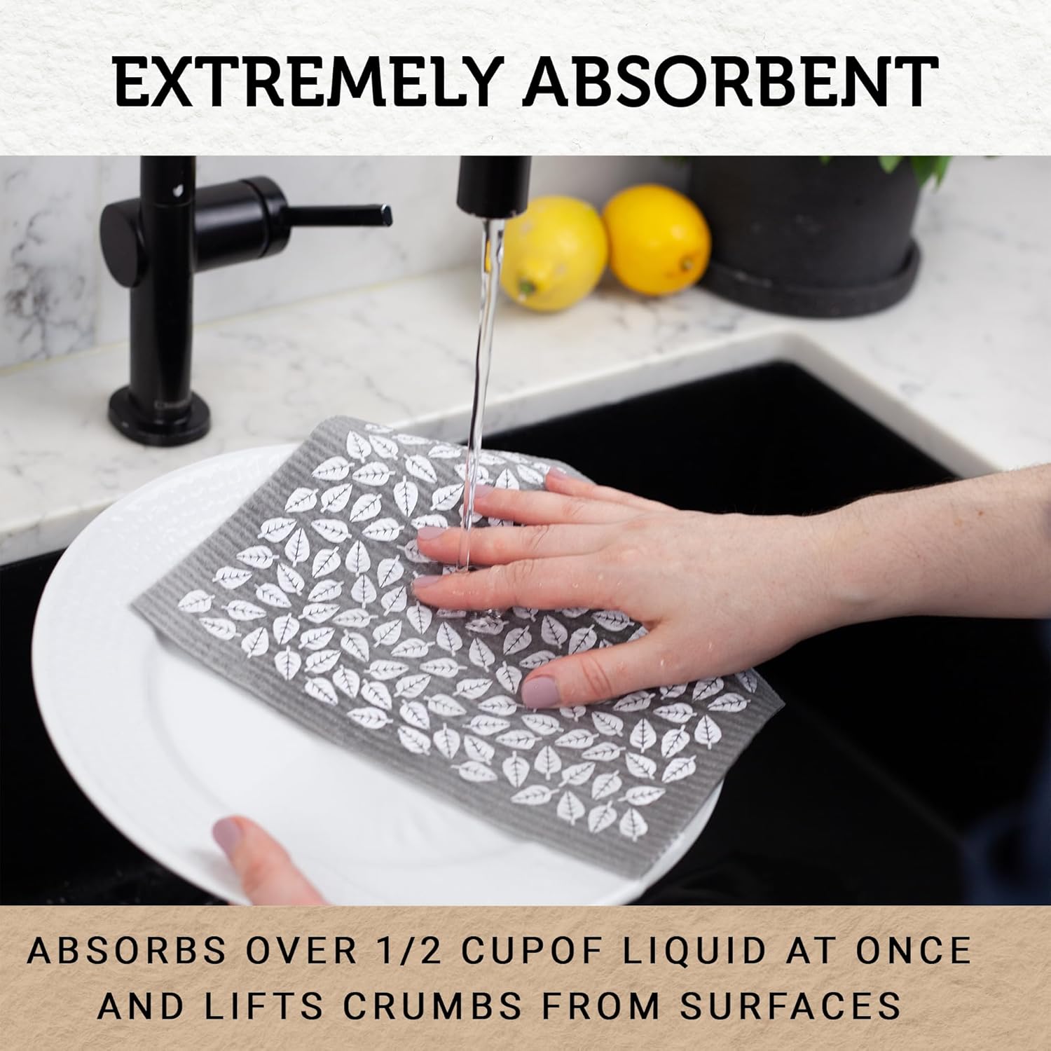 - Eco-Chic Packaging - Our grey Swedish dishcloths come in a charming 100% compostable package. Perfect for housewarming events, birthdays or holidays, this Swedish dishcloth set thoughtfully combines elegance and practicality.