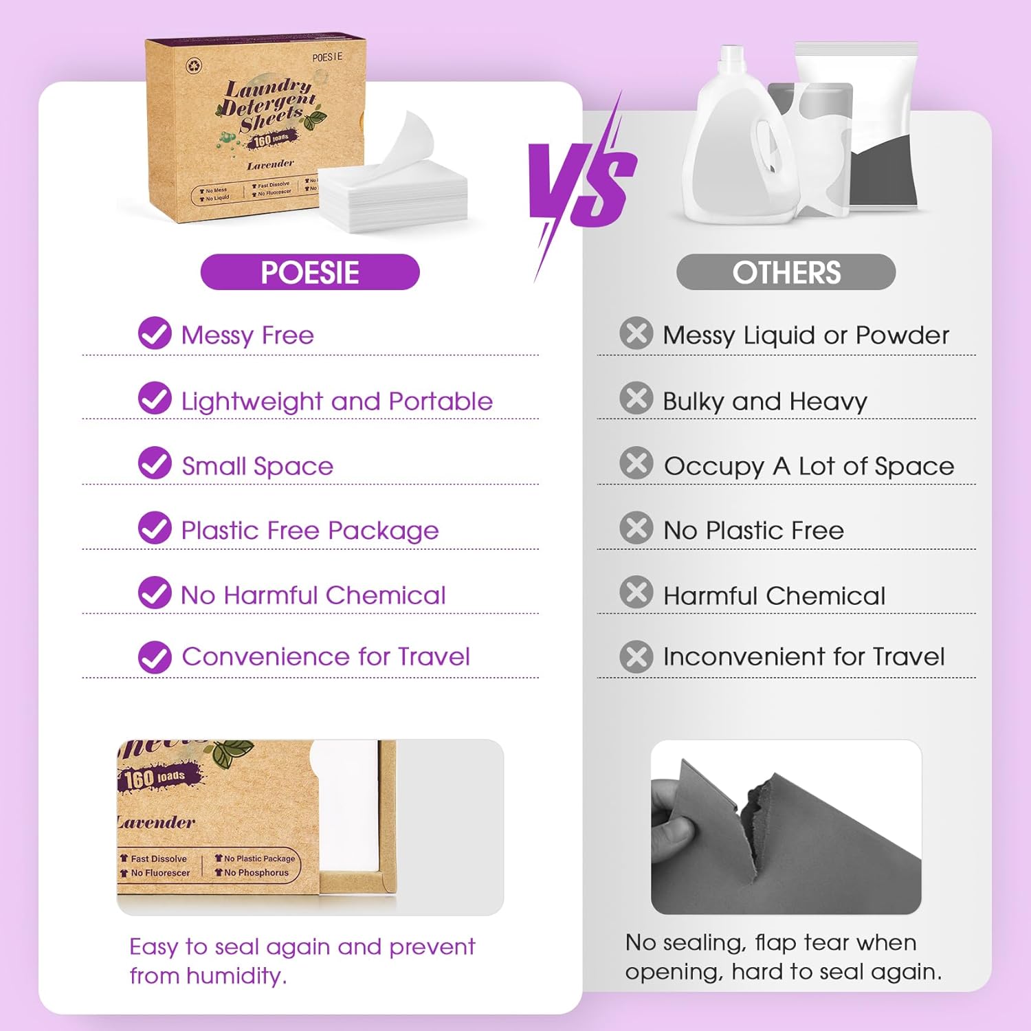 - Upgraded dissolution - We have upgraded the dissolving ability of the product by adding more actives so that the laundry soap sheets can dissolve better. Smaller Size, Lighter Weight and Better Cleaning Ability compared to traditional laundry detergent
