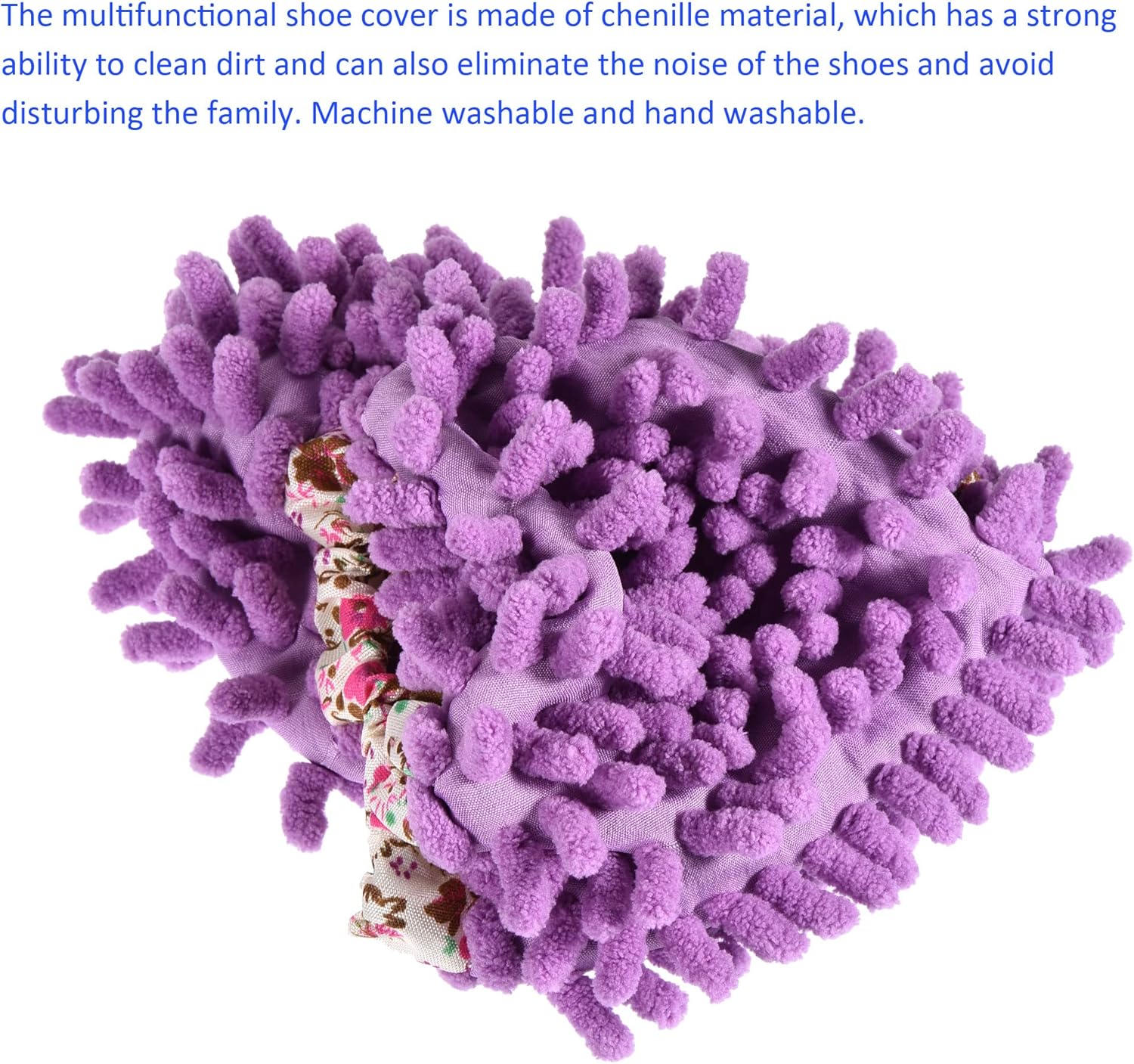 1 Pair Washable Cleaning Shoes Cover - Floor Cleaning Dust, Chenille Microfiber Duster Mop Slippers, Apply to House Office Room (Purple)