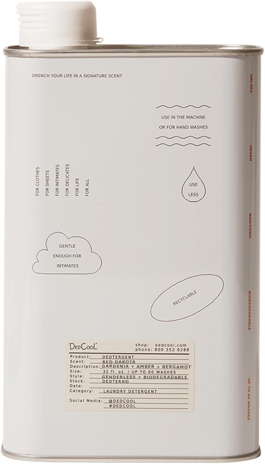 - GENTLE, PREMIUM CARE: Infused with plant-derived ingredients, this non-toxic, dye-free, and vegan detergent refreshes fabrics, softens clothing, and preserves colors while leaving garments lightly scented with DedCool’s signature fragrance.