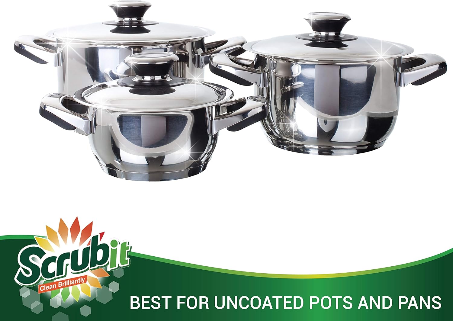12 Pack Stainless Steel Scourers by Scrub It – Steel Wool Scrubber Pad Used for Dishes, Pots, Pans, and Ovens. Easy scouring for Tough Kitchen Cleaning. (Large (50 gram))