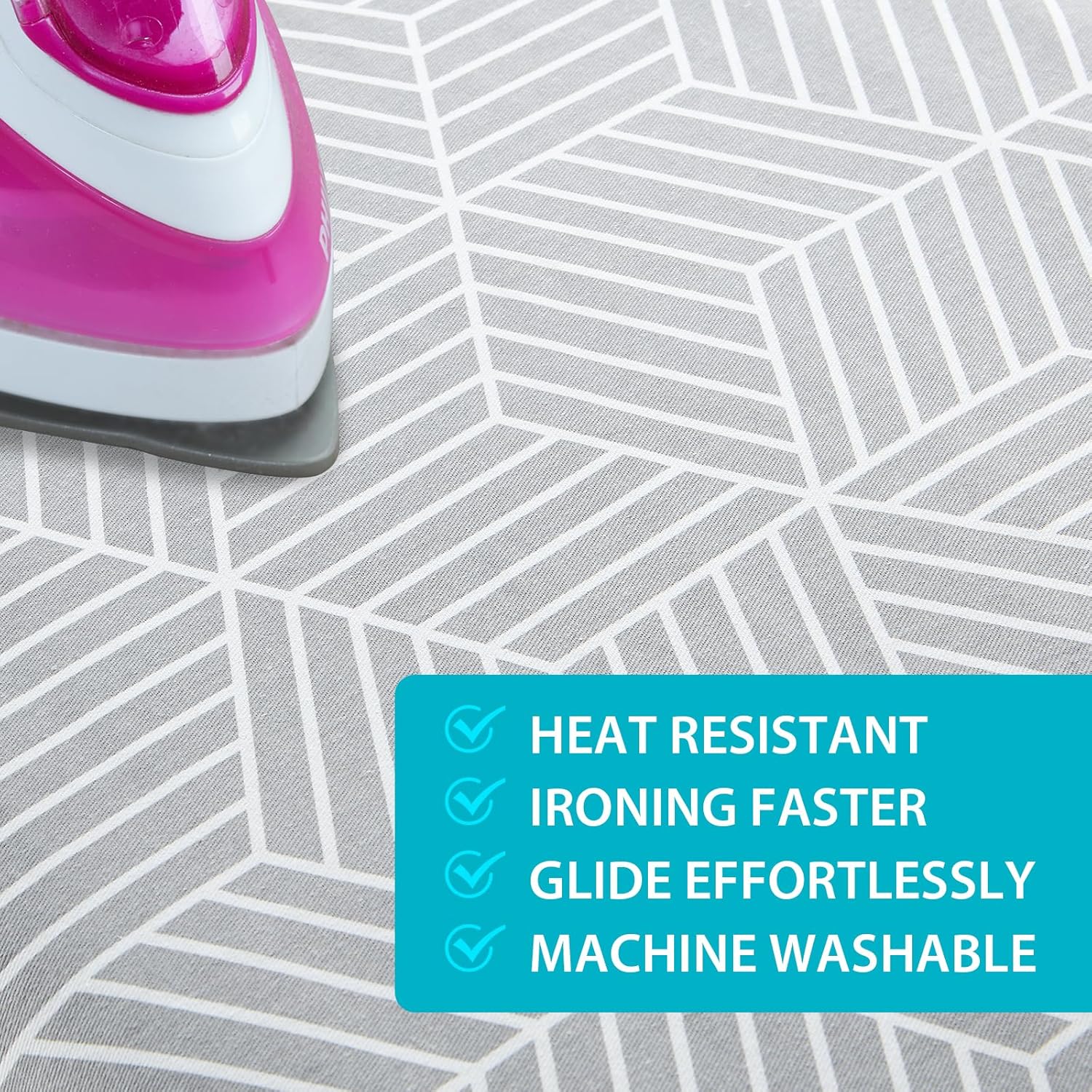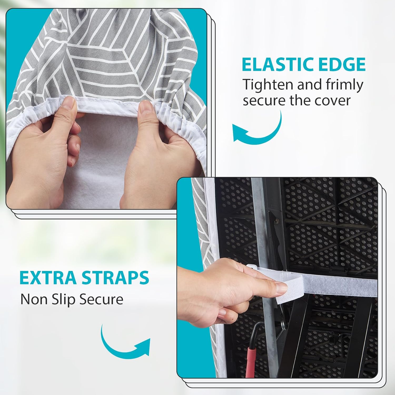 - SECURE ON YOUR IRONING BOARD TIGHTLY: The unique double non slip nose bag simplifies installation and secures it firmly in place. The elastic edge can tighten and straighten the ironing board cover to ensure that it is not easy to move or slide