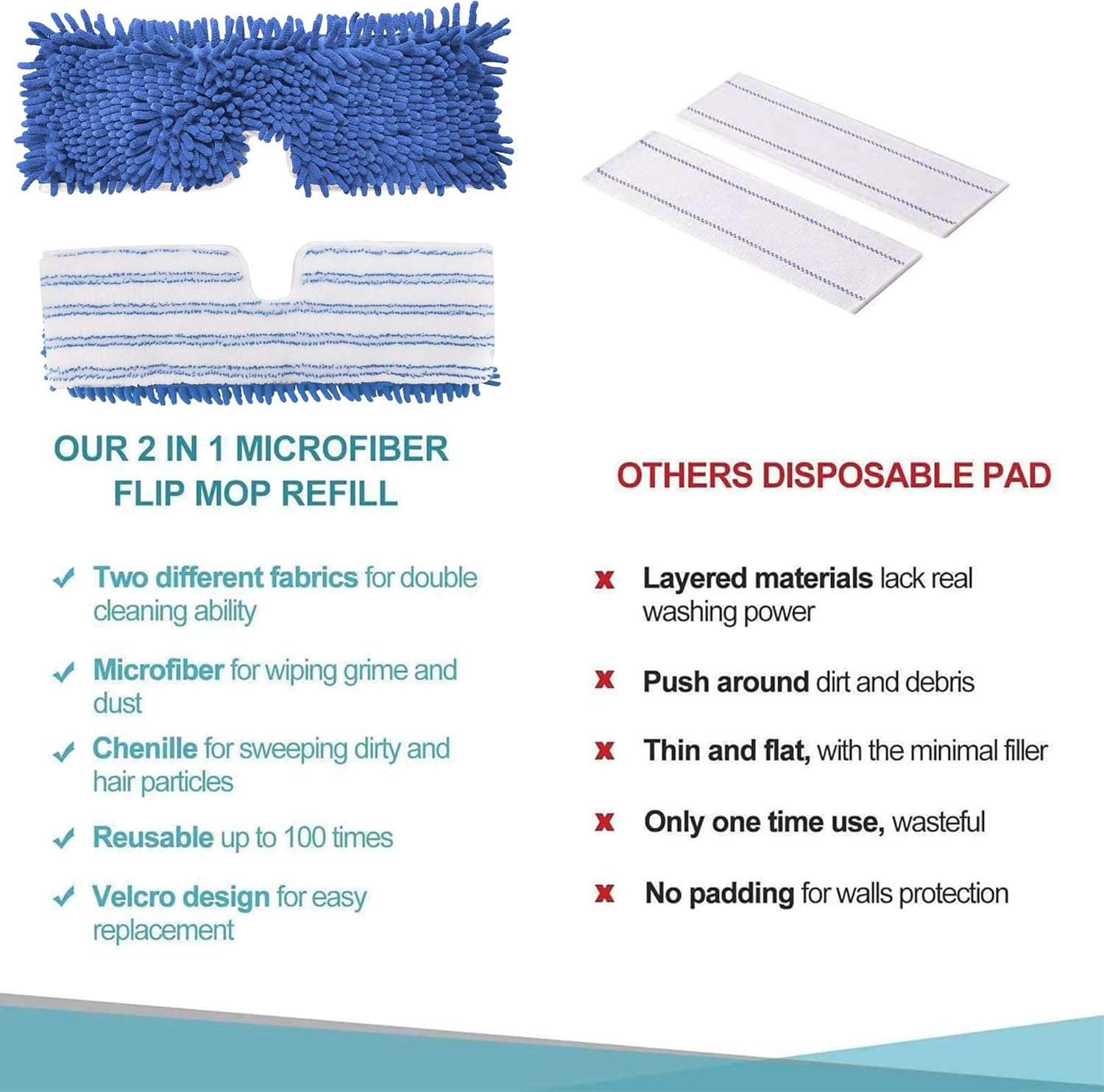 - Applicable to multiple surface: This mop replace head can be used on both dry and wet surfaces. And wear-resistant and thickened fabrics that make it more durable. It can be used on different floor surfaces, such as marble, laminate flooring, tiles, wooden floors, etc. and the soft fabric will not scratch the floor