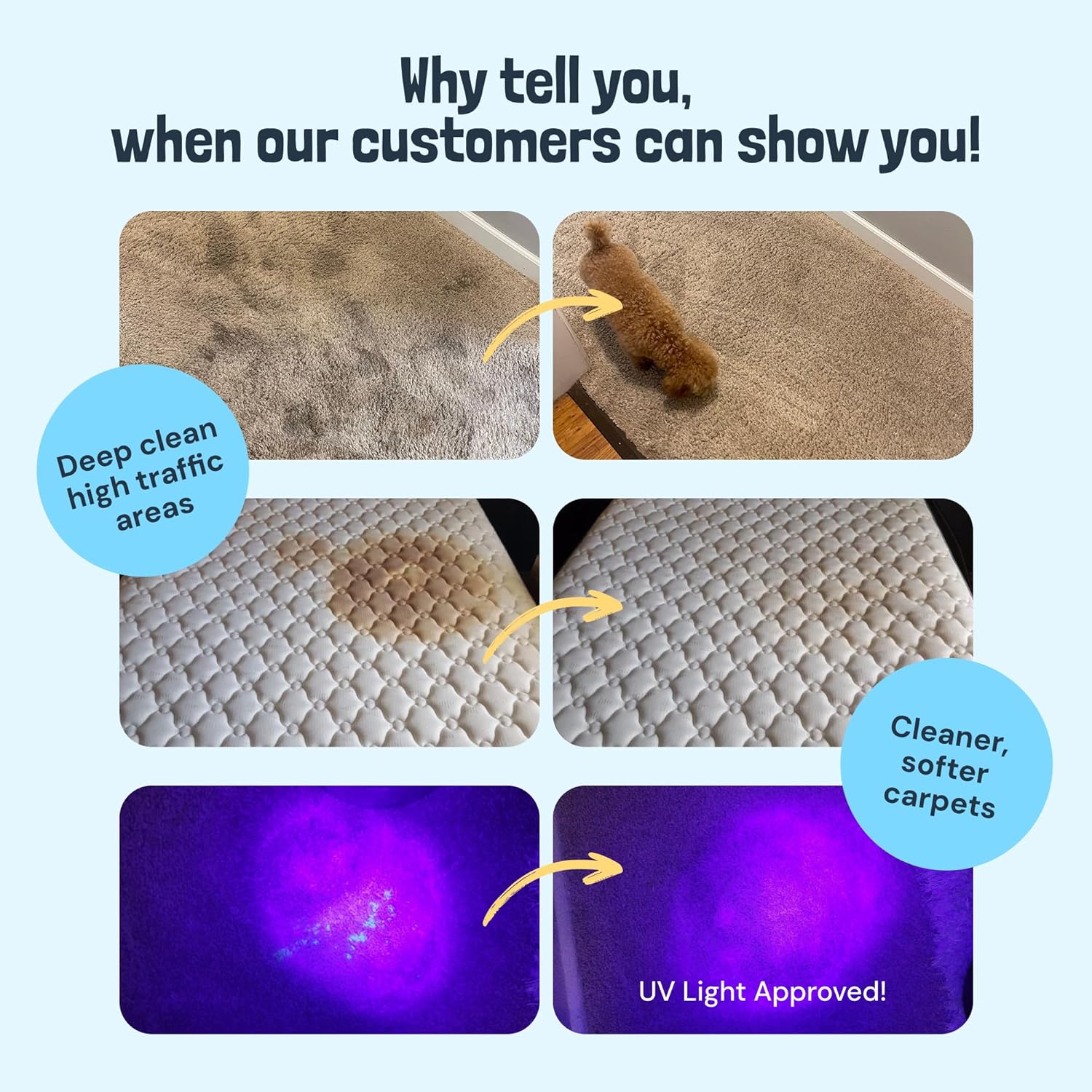 • Pet-Friendly Clean: Designed with your furry friends in mind, this pet carpet shampoo is safe and effective. It uses clean ingredients to keep your home welcoming for both family and pets, without harsh odors