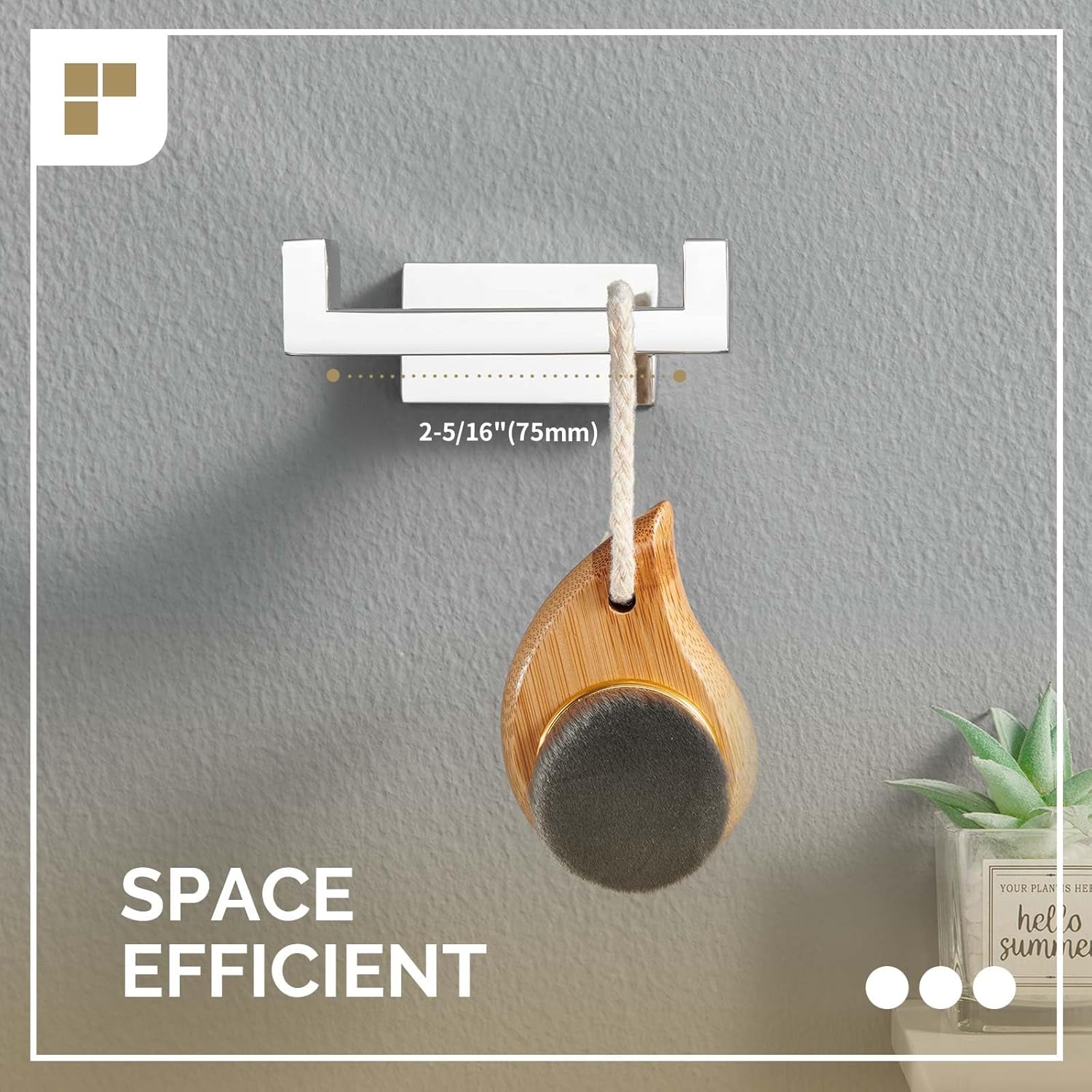 - KEEP CLEAN AND TIDY: 2 hooks space 2-15/16"(75mm), allows spreading and drying out damp towels quickly, distance between 2 mounting screw holes is 7/8"(22mm) from center to center