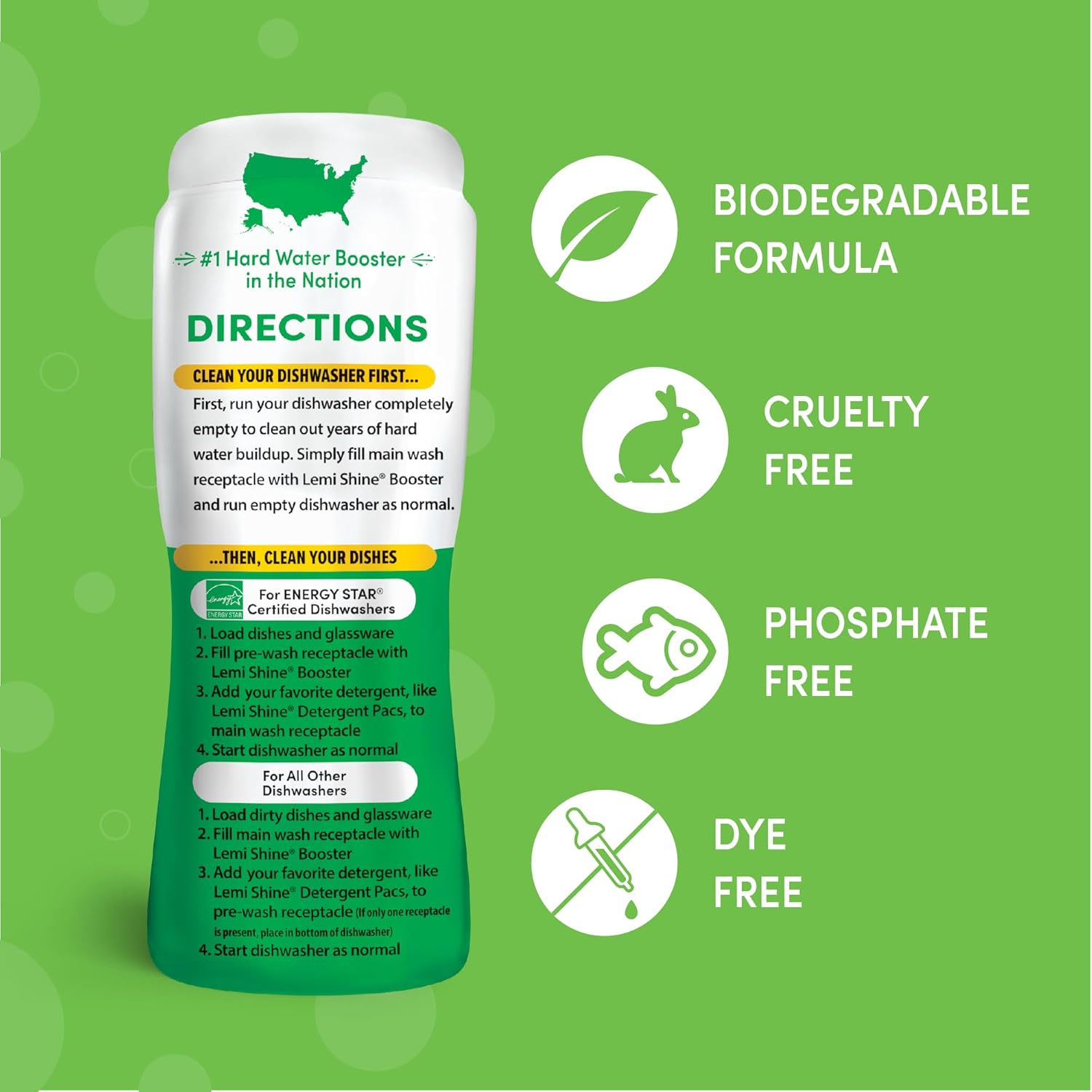 Lemi Shine Dish Detergent Booster, Hard Water Stain Remover, Multi-Use Citric Acid Cleaner 10 oz, Pack of 3