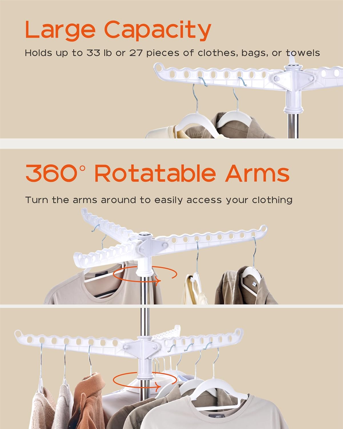 • [360 Rotating Clothes Rack] Equipped with a 360-degree swivel design, this laundry drying rack provides you with the convenience of hanging and accessing your clothes.