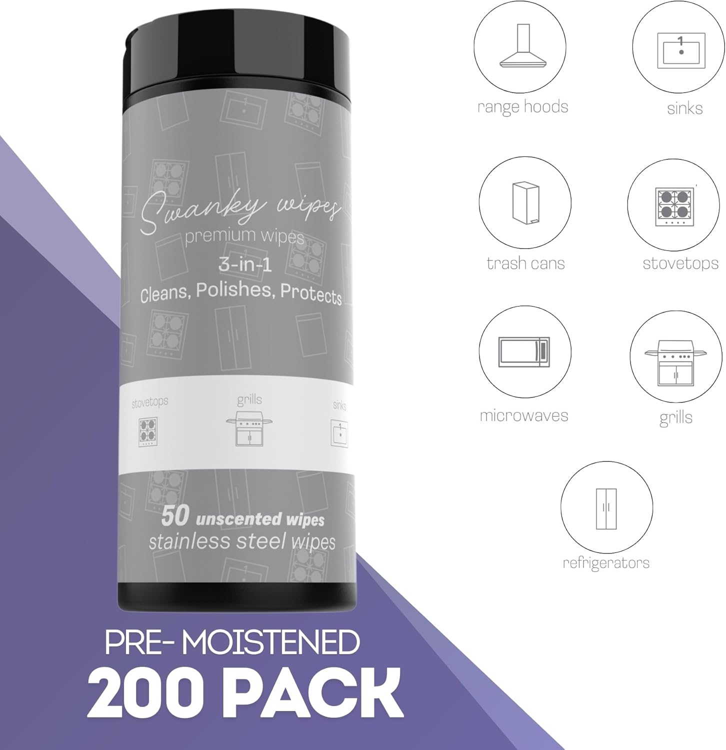 - PRODUCT SPECS - Swanky Stainless Steel Cleaning Wipes come in a pack of 200 soft, non-scratch wipes. Each wipe is pre-moistened and ready to use, making them a convenient addition to your cleaning supplies. Ideal for keeping your stainless steel appliances looking polished and clean.