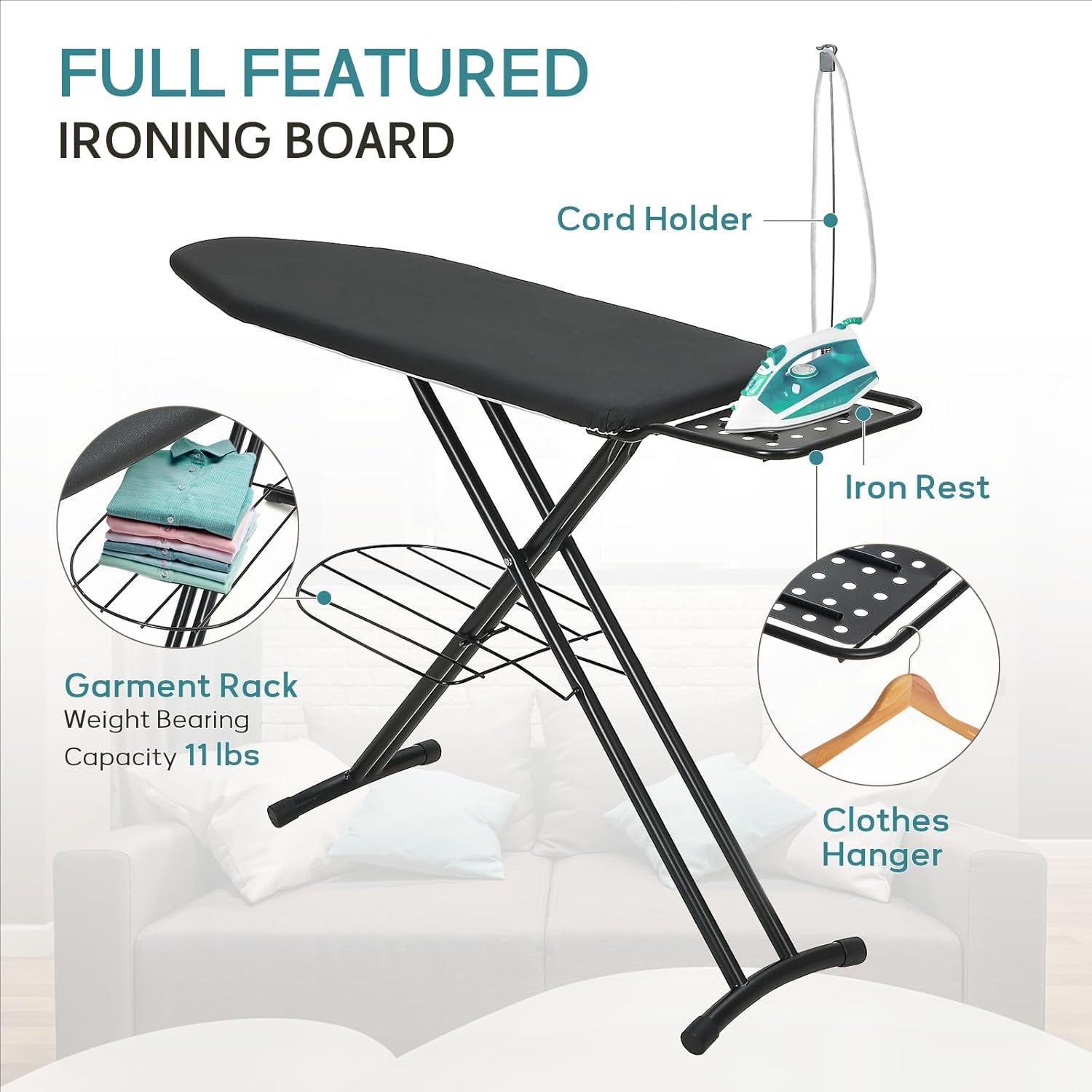 Ironing Board Full Size, RAINHOL 43"x13" Sturdy Iron Board with Iron Rest and Garment Rack, Height Adjustable Metal Construction with Ultra Thick Cover and Padding, Foldable and Heavy Duty