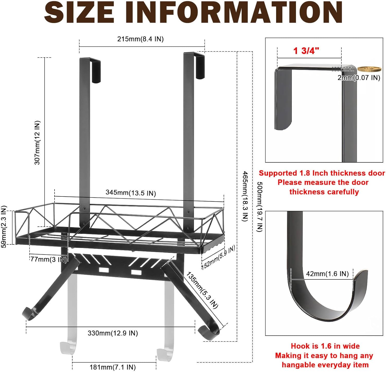 - ADJUSTABLE AND PRACTICAL DIMENSIONS: Adjustable hooks fit most standard ironing boards, suitable for T or Y shaped boards; Basket opening wide is 3 in, convenient to place and take out the iron; Note: Keep a 0.09 in door gap to keep door hangers from rubbing against of door top