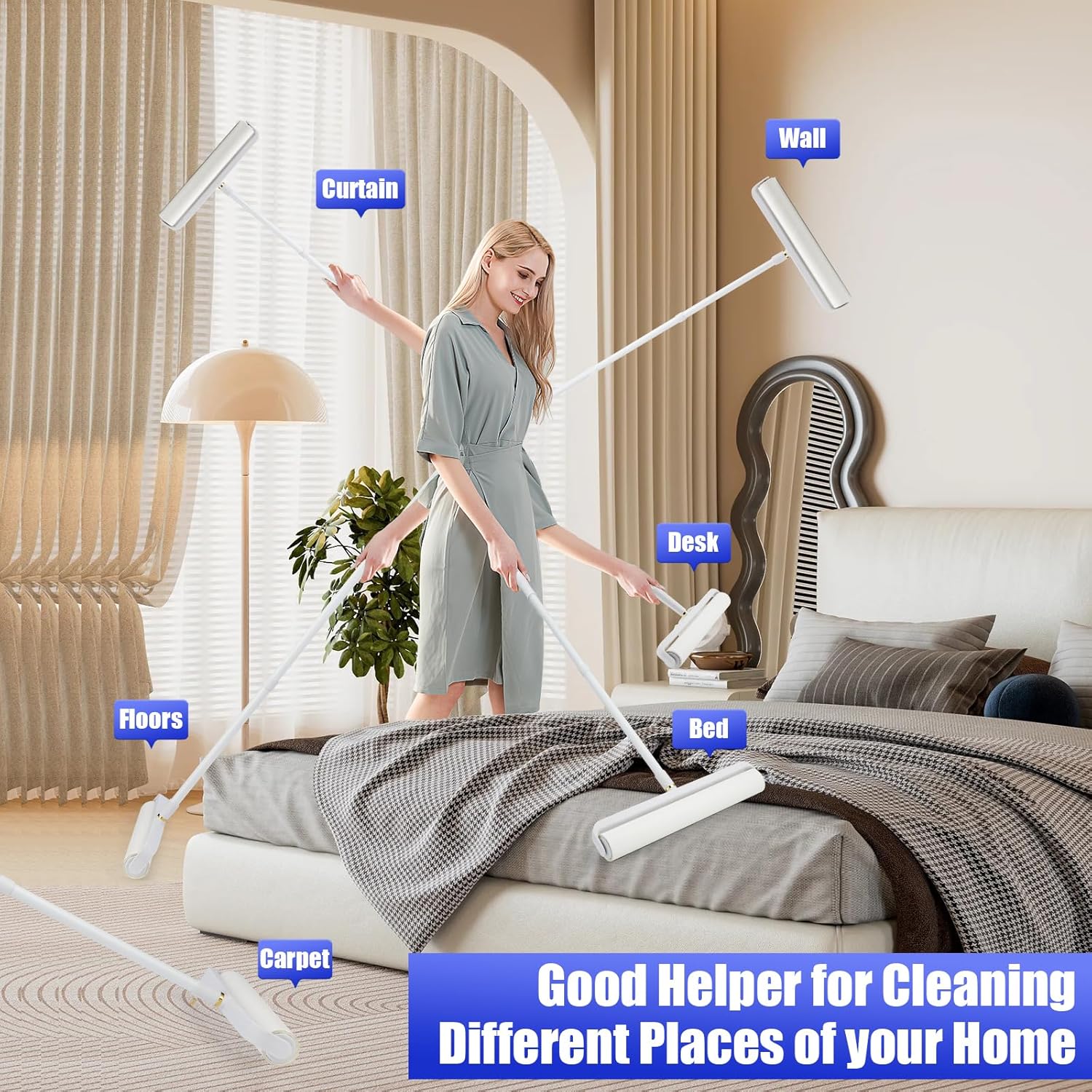• MULTI-SURFACE PET HAIR TERMINATOR: Engineered for fur-covered surfaces: upholstery, velvet curtains, wool rugs, leather car seats, and delicate fabrics. Safely lifts embedded cat/dog hair, dander, lint balls, and dust—no water, batteries, or messy cleanup required.
