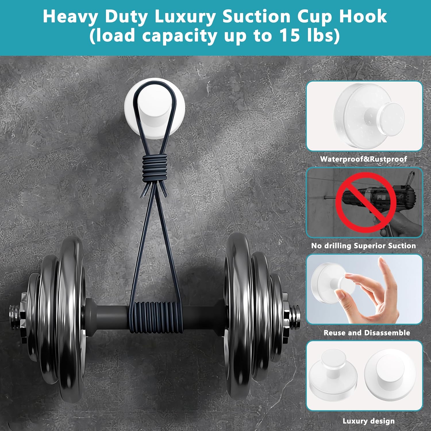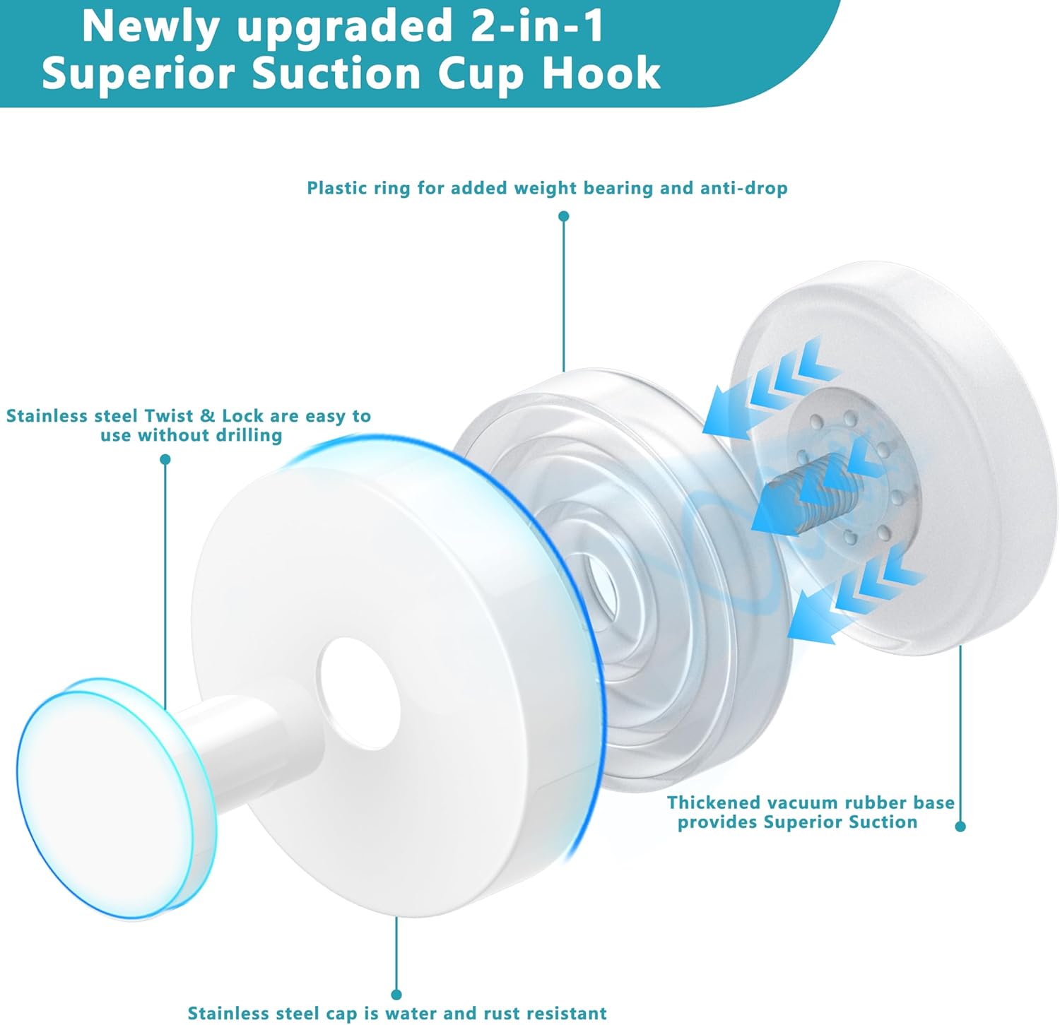 - 【Superior Suction】Newly upgraded 2-in-1 vacuum suction cup hook, high viscosity silicone base, with advanced vacuum suction technology, to create a strong suction, load-bearing 15 lbs without falling.