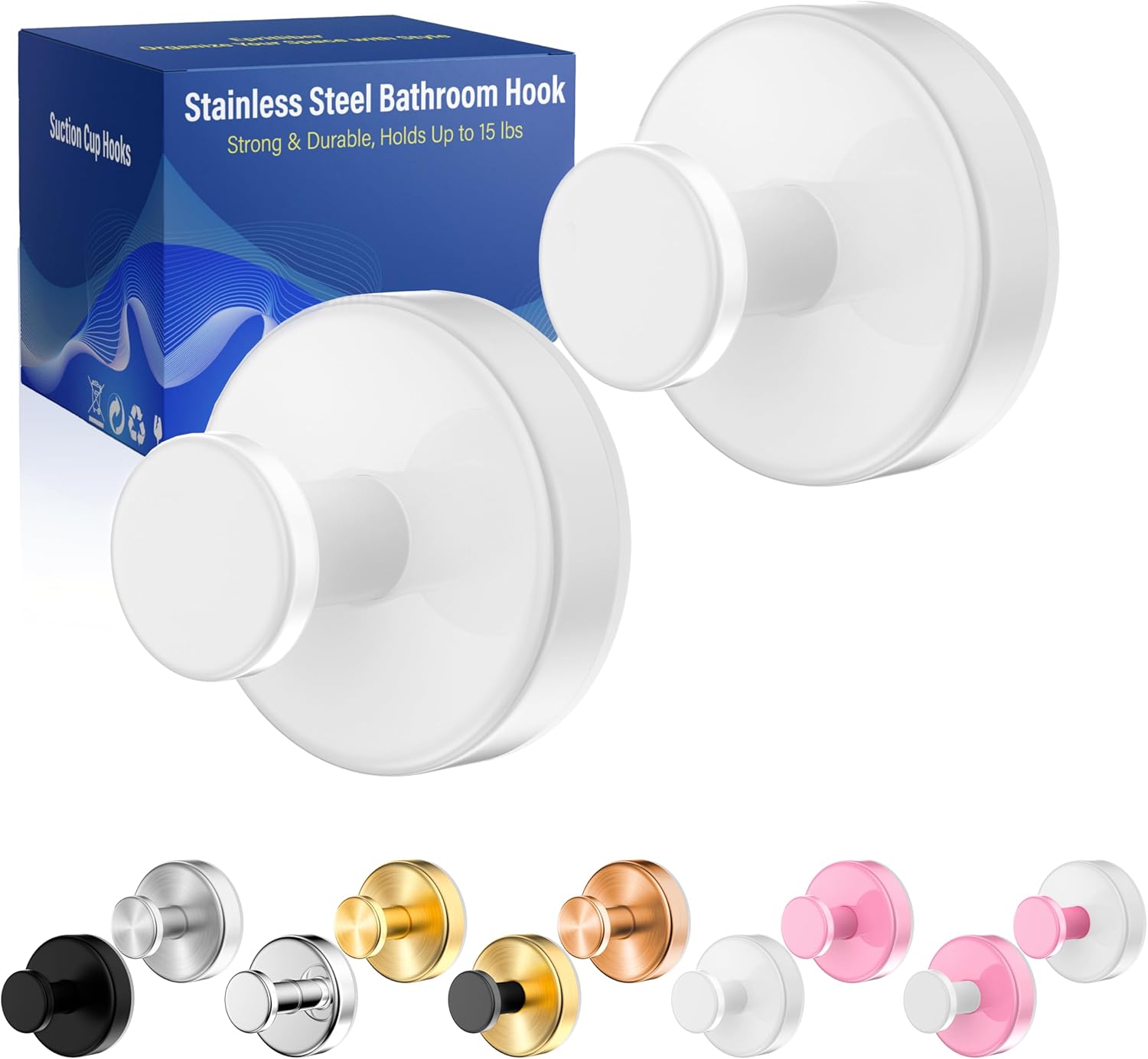 - 【Hangs Securely on 10+ Materials】The suction cup hooks are suitable for bathrooms,kitchens,windows.it can be fixed to fit tile, glass, mirror, marble, metal,acrylic,plastic,stainless steel,quartz,laminate and other smooth wall surfaces.it can hang towels, loofahs, bathrobes, coats and other items up to 15 lbs