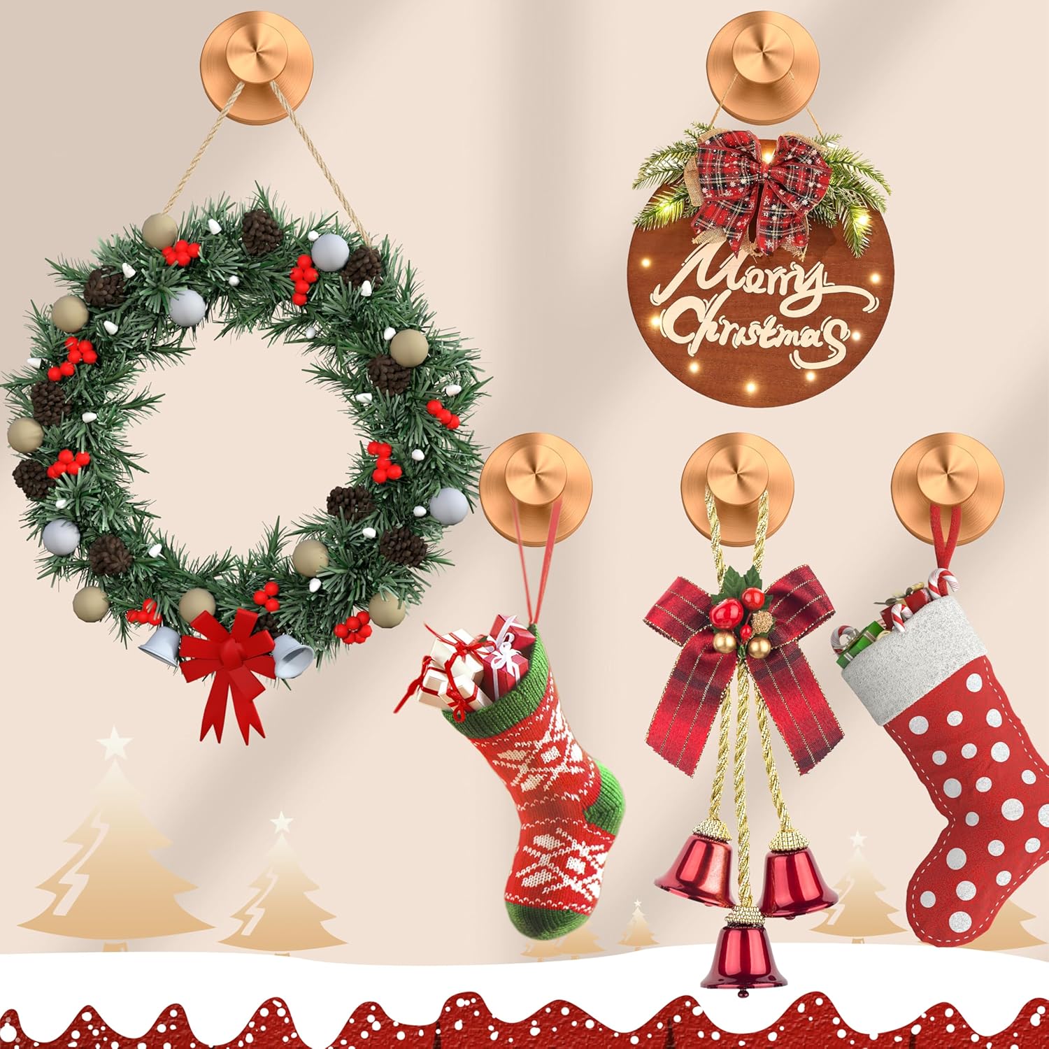 - 【Hangs Securely on 10+ Materials】The suction cup hooks are suitable for christmas decorations ,bathrooms,kitchens,windows, wreath hanger,heavy duty suction cups for glass.it can be fixed to fit tile, glass, mirror, marble, metal,acrylic,plastic,stainless steel and other smooth wall surfaces.,it can hang towels, loofahs, bathrobes,garland wreath and other items up to 15 lbs.