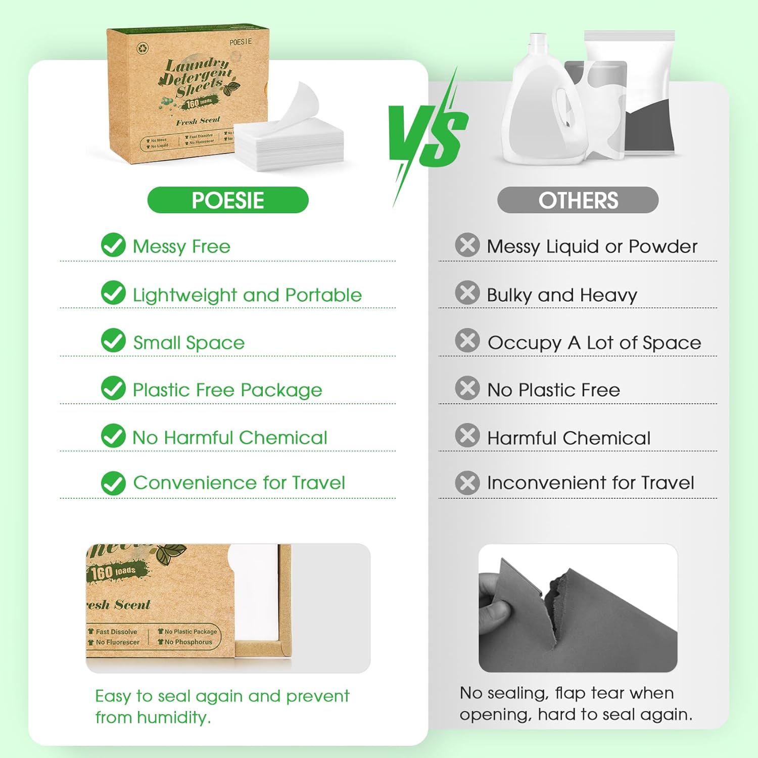 - Take it with you anytime - Say goodbye to heavy plastic jugs and pods, easy to pick up recyclable packaging and no pollution lightweight laundry tablets for your home, dorm or travel life