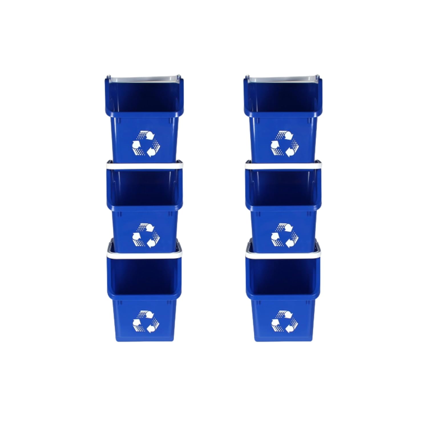 6 Gallon Stackable Recycling Bins for Homes, Garages, Offices Made of 100% Recycled Plastic - (Blue, 6 Pack)