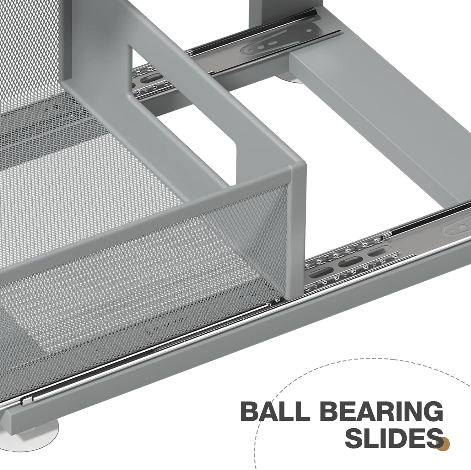 - 【Supreme-Smooth Glides】Built with heavy-duty ball-bearing slides,pull out cabinet organizer glides out smoothly and quietly,even when storing bottles,detergents,or heavy cleaning supplies.
