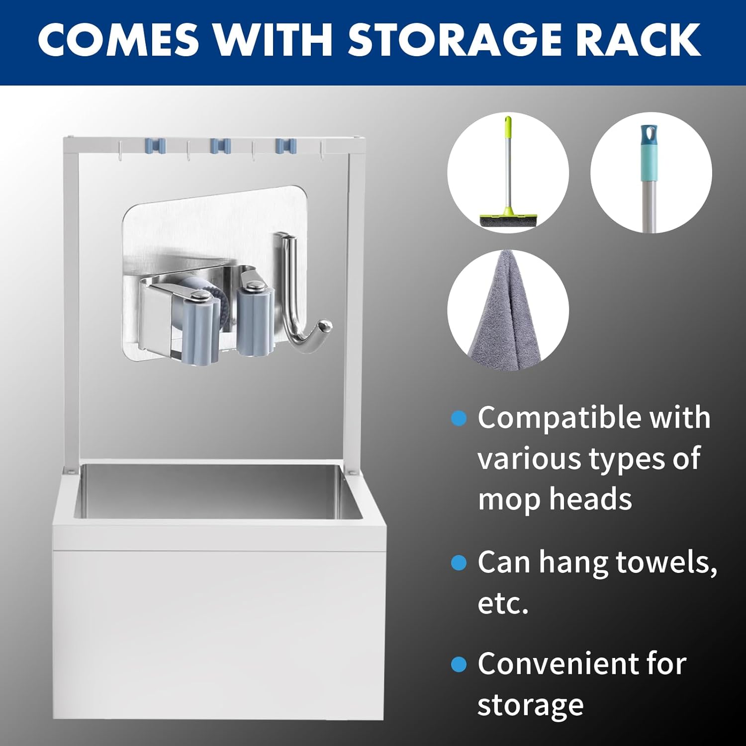 - Convenient Cleaning Tool Rack: Equipped with a handy cleaning tool rack, this commercial mop sink provides a convenient storage solution for mops, brooms, and other cleaning essentials, helping you maintain a tidy and organized space.
