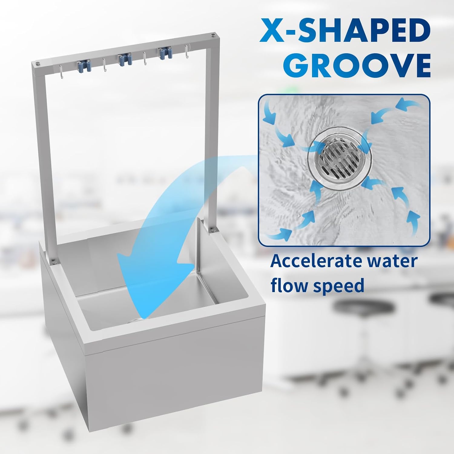 - Spacious Basin: With dimensions of 23.6" x 23.6" x 13", this stainless steel mop sink offers ample space for easy cleaning and rinsing of mops, buckets, and other cleaning equipment.