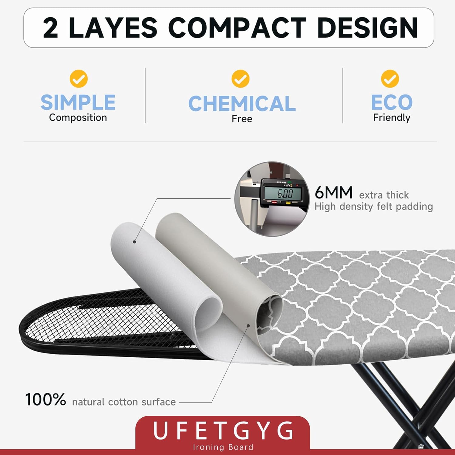 Ironing Board with Silicone Iron Rest pad,Extra Thick Cover,14x54 Compact and Space Saver Iron Board, Height Adjustable,Stable Structure, Easy to Fold, White and Gray