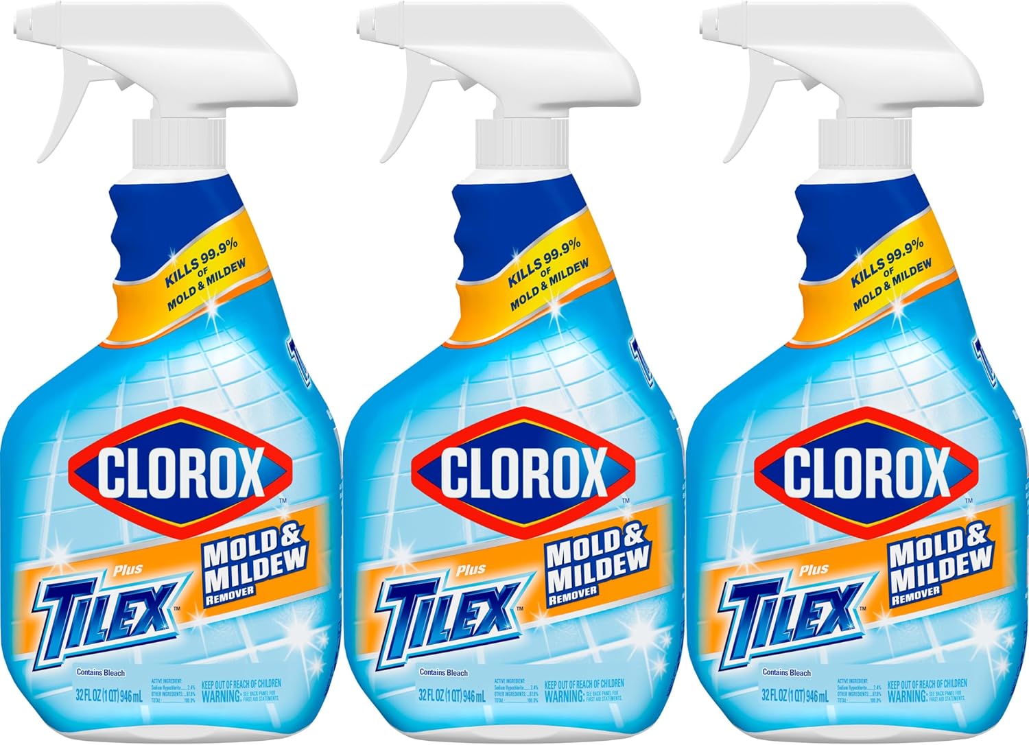 Clorox Plus Tilex Mold and Mildew Remover with Bleach, Spray Bottle, 32 Fluid Ounces, Pack of 3