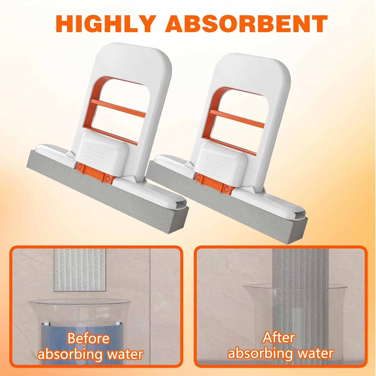 • 【Effortless Squeezing】The sponge mop head absorbs spills instantly, while the one-touch squeeze mechanism lets you wring out water effortlessly—no wet hands or messy drips! Ideal for quick cleanups on floors, countertops, and more